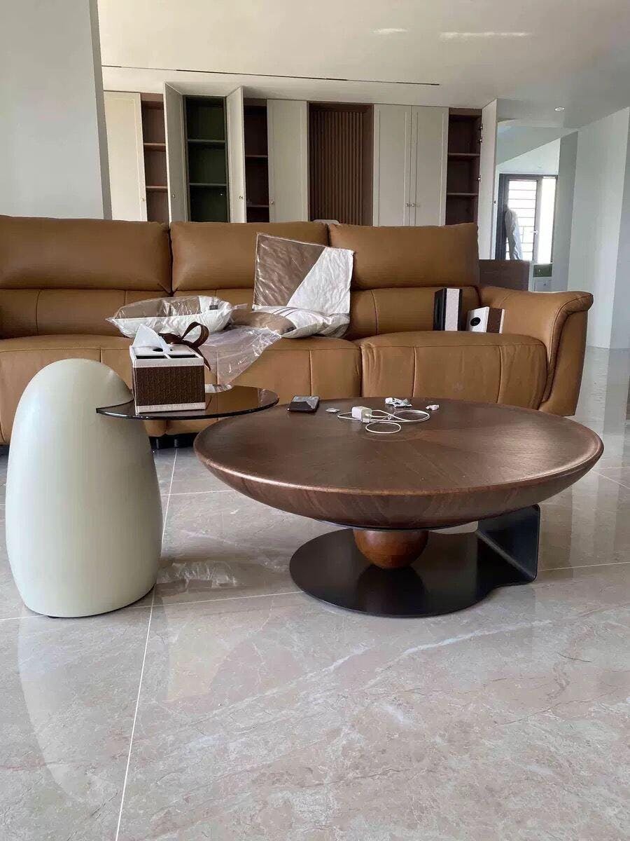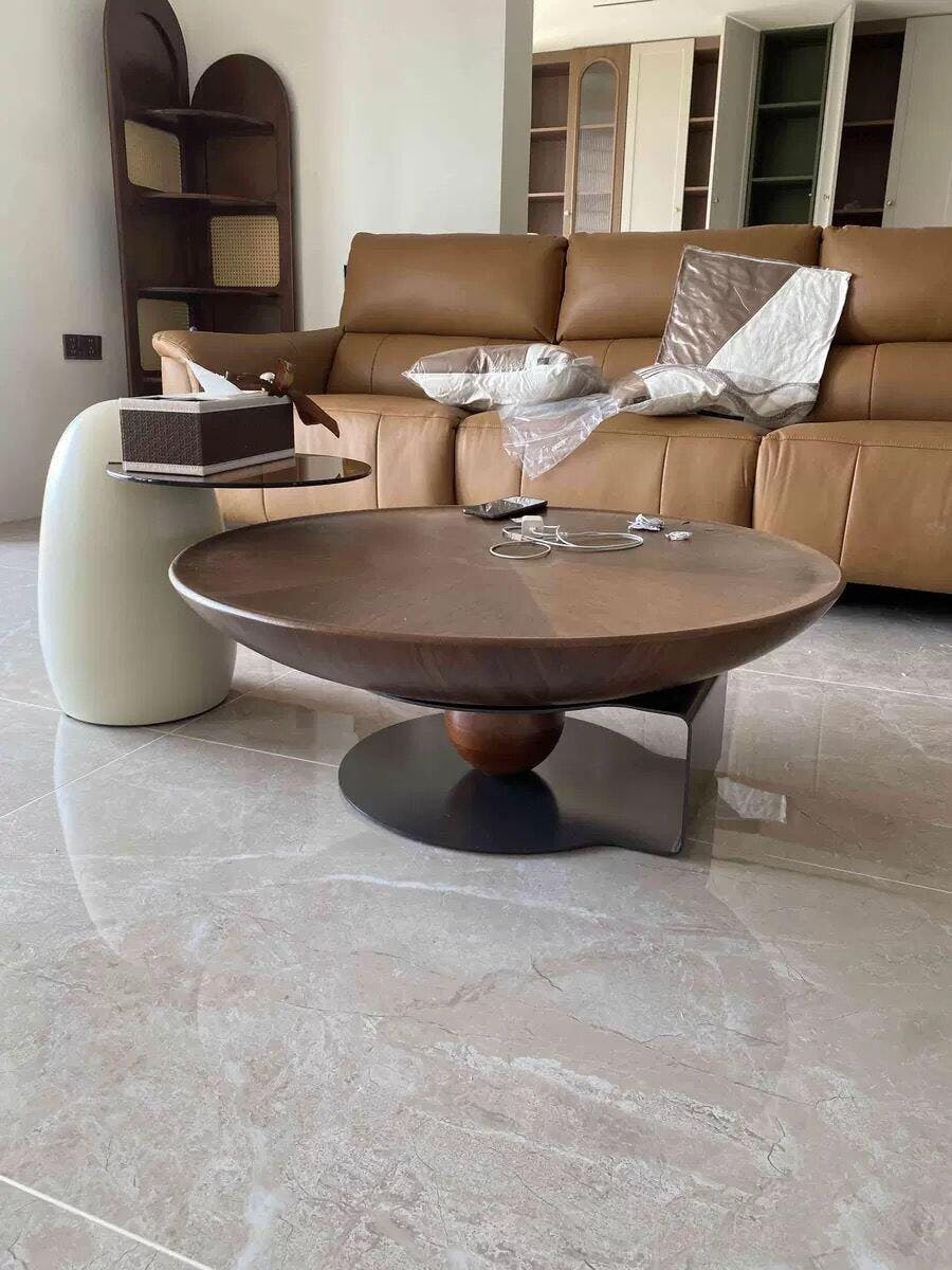 Make a striking statement in your living space with the MORGANITE Modern Center Table, a masterful blend of sculptural artistry and functional design. This contemporary coffee table showcases premium walnut wood craftsmanship with its distinctive curved pedestal base, creating visual lightness while delivering exceptional stability. The rich, natural wood grain is complemented by a sophisticated marble accent surface and an innovative cylindrical storage unit that doubles as both practical storage and artistic element. MORGANITE transforms any living room into a curated space, seamlessly blending organic warmth with contemporary geometric forms.