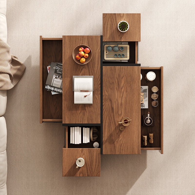 The QUADRIX Modular Coffee Table delivers next-level versatility for the modern living room. Crafted from high-quality engineered wood, QUADRIX features sleek, geometrically arranged storage drawers and compartments that glide open from all sides, giving effortless access to everything from remote controls and magazines to snacks and decor. Its contemporary walnut finish and bold, rectilinear silhouette suit both minimalist and luxury interiors, while the table’s dynamic modular layout encourages creative organization and aesthetic presentation.